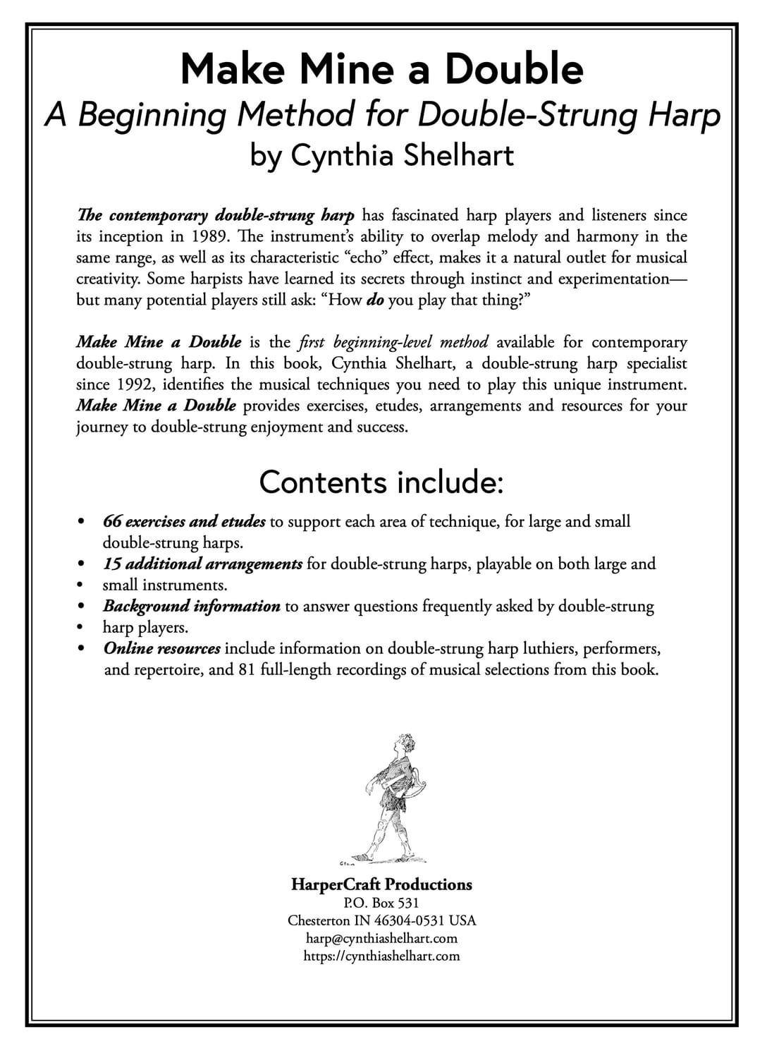 Ready to learn how to play the double-strung harp without the guesswork? Make Mine a Double is the first-ever method book for contemporary double-strung harp—with clear, step-by-step exercises designed for both large and small instruments.